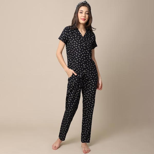 You can simply unfurl yourself into the embrace of this night suit to unwind after a long day at work. This one is crafted with the softest fabric to leave you feeling light and airy.
